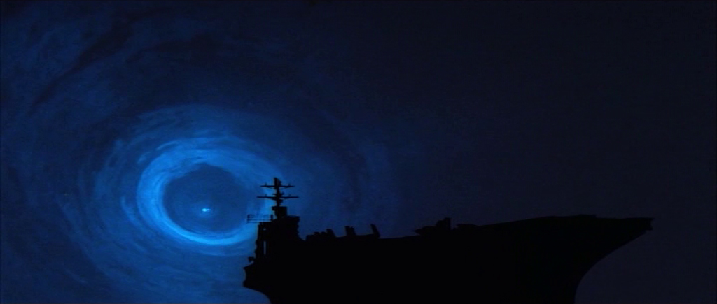 Dann nimmt der Film jedoch eine überraschende Wendung, als eine Raum-Zeit-Anomalie auftaucht und mit der USS Nimitz etwas Ähnliches geschieht, wie mit der USS Eldridge in Das Philadelphia Experiment (1984). Der Flugzeugträger wird fast 40 Jahre in der Zeit zurück versetzt. Das Zeitreise-Element stellt die Führungsoffiziere vor schwierige Entscheidungen. Wie sollen sie sich verhalten? Dürfen sie in den Lauf der Geschichte eingreifen? Das macht den Film letztendlich wieder interessant.