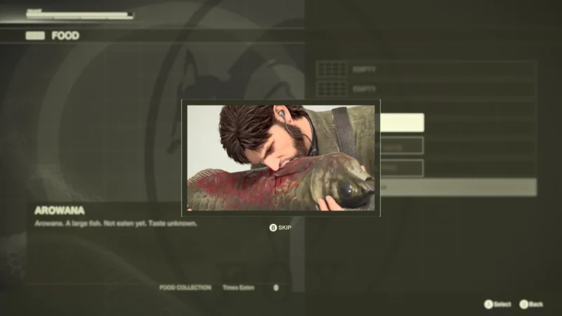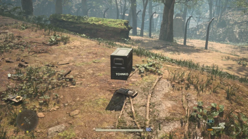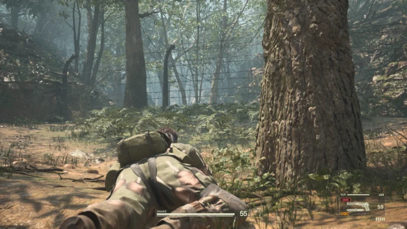 Am Gameplay hat sich grundlegend auch nichts geändert. Wie im Original haben die Hauptcharaktere eine STAMINA Anzeige – diese bestimmt, wie lange wir die Luft anhalten können und auch wie lange wir irgendwo hängen können. Körperliche Aktivitäten wie Kämpfen, Rennen und dergleichen lässt uns STAMINA verlieren, auffüllen geht mit dem Konsumieren von Nahrung. Wir haben zu Beginn aber nur kleine Feldrationen dabei, die überhaupt nicht ausreichen für so eine lange Mission – also gehen wir jagen. Wir essen Schlangen, Pilze, Früchte, Frösche, Vögel – und eklige russische Rationen. Snake kommentiert den Geschmack der Speisen – essen wir nicht, grummelt unser Magen irgendwann und kann nahe gelegene Wachen alarmieren.
