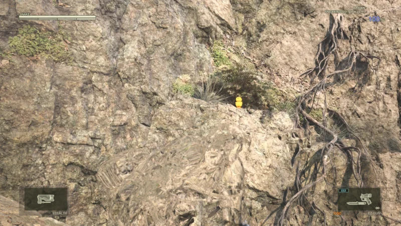 Dazu hat man auch noch neue Collectibles eingebaut. Neben den Kreotan-Fröschen aus dem Original haben wir auch noch die Ga-Ko-Enten. Diese sind getarnt und nur schwer zu entdecken – aber, wir haben im Pausenbildschirm eine Übersicht, ob wir die beiden Tiere in dieser Zone bereits gefunden haben. Es ist auch egal, ob wir danach einen alten Spielstand laden oder sterben, Gefunden bleibt Gefunden. Und noch ein weiteres Collectible hat man eingebaut – manche Soldaten tragen eine Filmspule bei sich, mit der wir im Secret Theater alternative Zwischensequenzen und teilweise sogar Filme freischalten können, wie Metal Gear Sigint.