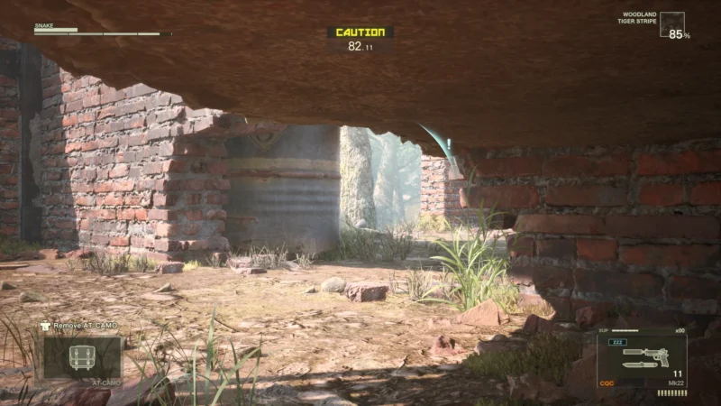 Außerdem bekamen wir einige Quality of Life Upgrades. Im Original mussten wir, wenn wir einen Spielstand laden wollten, erst zurück zum Hauptmenü und dann von dort laden, was sogar in der Master Collection noch Ewigkeiten gedauert hat – hier können wir direkt laden, was etliche Zeit erspart. Wir können auch jederzeit nachschauen, ob wir einen Alarm ausgelöst oder jemanden getötet haben – das erleichtert die Jagd nach dem begehrten Titel Foxhound (der höchste) immens. Im Original konnten wir auch nicht auf Very Easy Uniformen sammeln und dann auf Extreme benutzen, hier geht dies sehr wohl. Auch dies erleichtert uns die Titeljagd, ebenso wie ein neues Bonus-Item. Der Ghillie suit erhöht unseren Tarnlevel immens und hat keine Auswirkungen auf den Rang. Ein Kinderspiel ist Foxhound damit aber immer noch nicht.